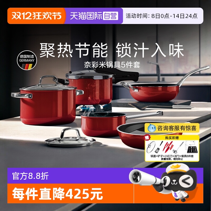 德国进口正品厨具套装全套家用麦饭石不粘锅锅具五件套厨房电磁炉