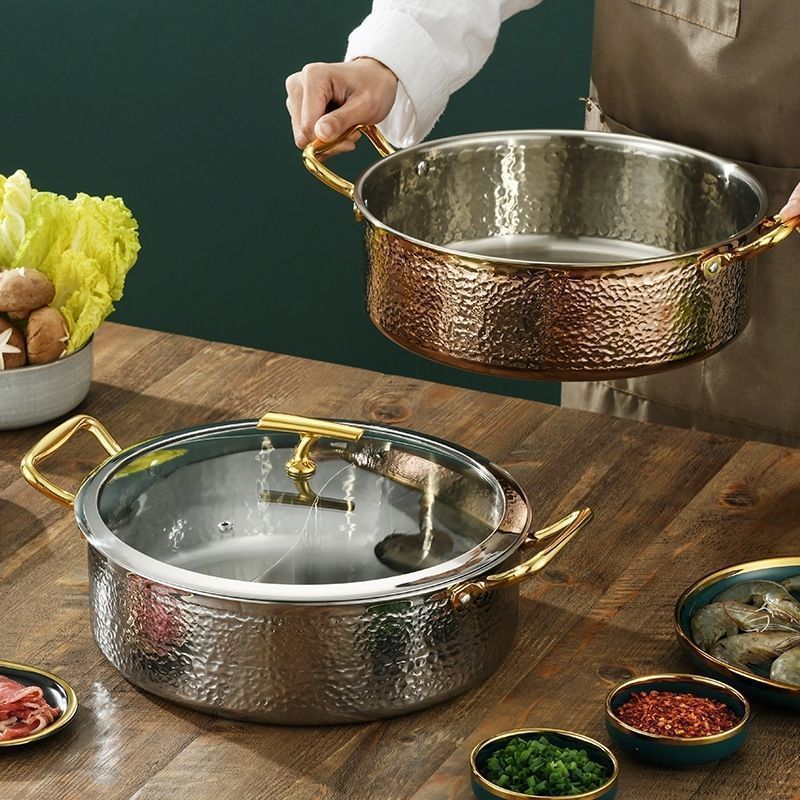 德国进口304不锈钢锤纹火锅锅具家用椰子鸡专用锅电磁炉燃气用商