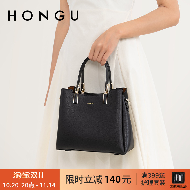 红谷包包新款牛皮单肩手提包时尚通勤大容量妈妈托特包女士包大包