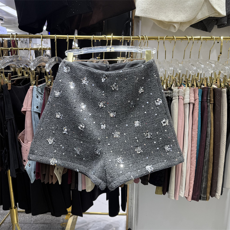 秋冬季雪尼尔短裤女外穿2025新款高腰显瘦冬款短裤子亮闪闪靴裤潮