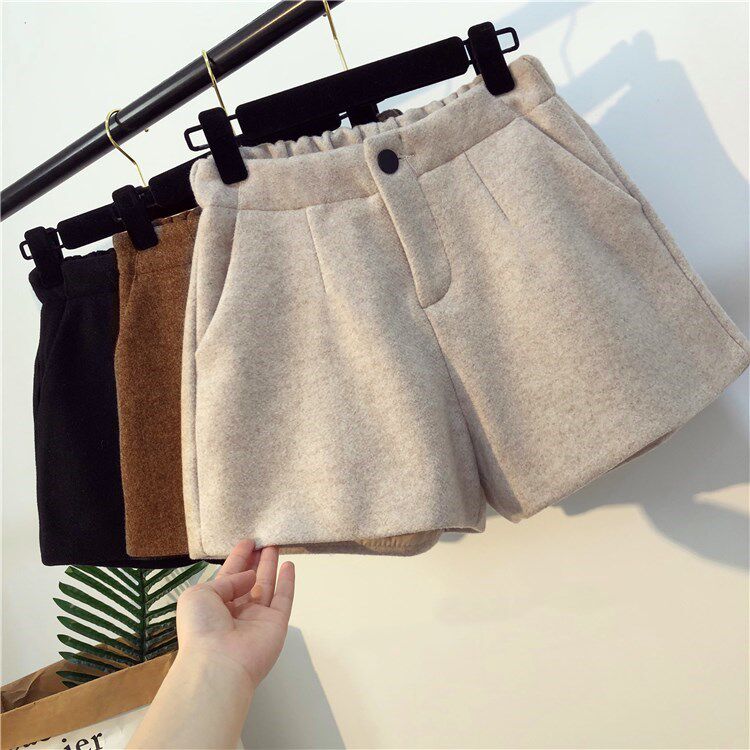 毛尼冬天短裤女冬款 外穿厚韩版百搭显瘦呢子冬季短裤女宽松新款