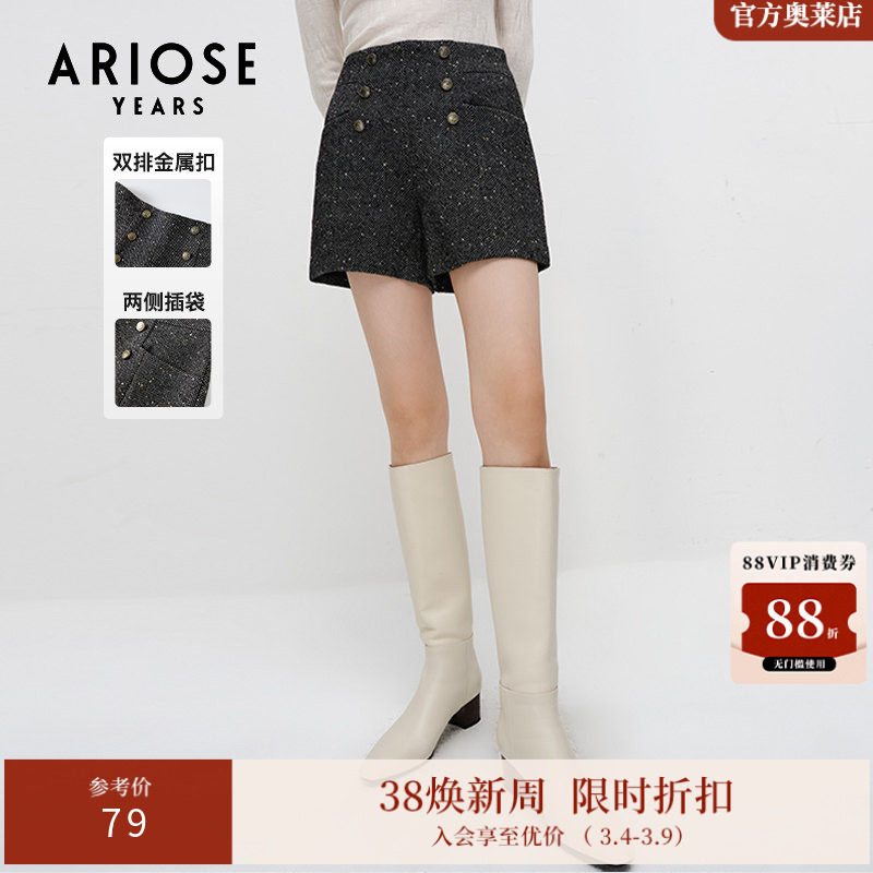 艾诺丝雅诗冬款亮丝花呢时尚高腰小个子短裤外穿女11033030