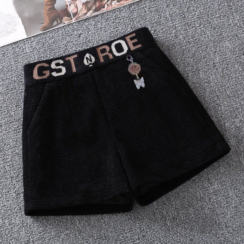 毛呢短裤女新款秋冬款百搭显瘦阔腿裤子外穿冬季靴裤休闲高腰呢子