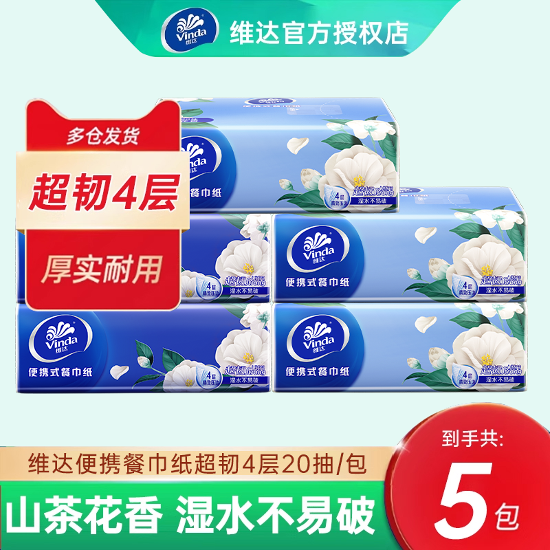 维达山茶花手帕纸4层20抽外出便携式可湿餐巾纸面巾纸可爱小包