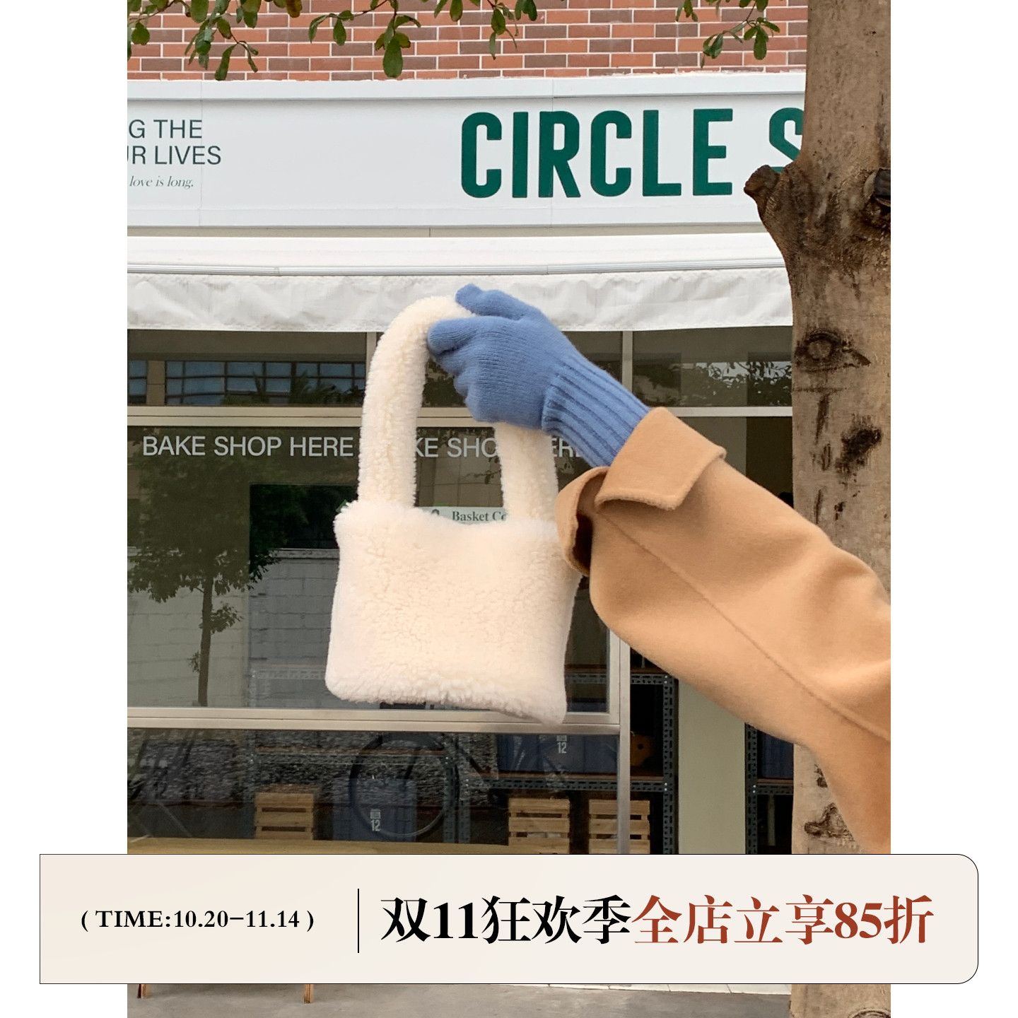芝士商店~白色毛绒绒手提包女秋冬羊羔毛手拎包设计感可爱小包包