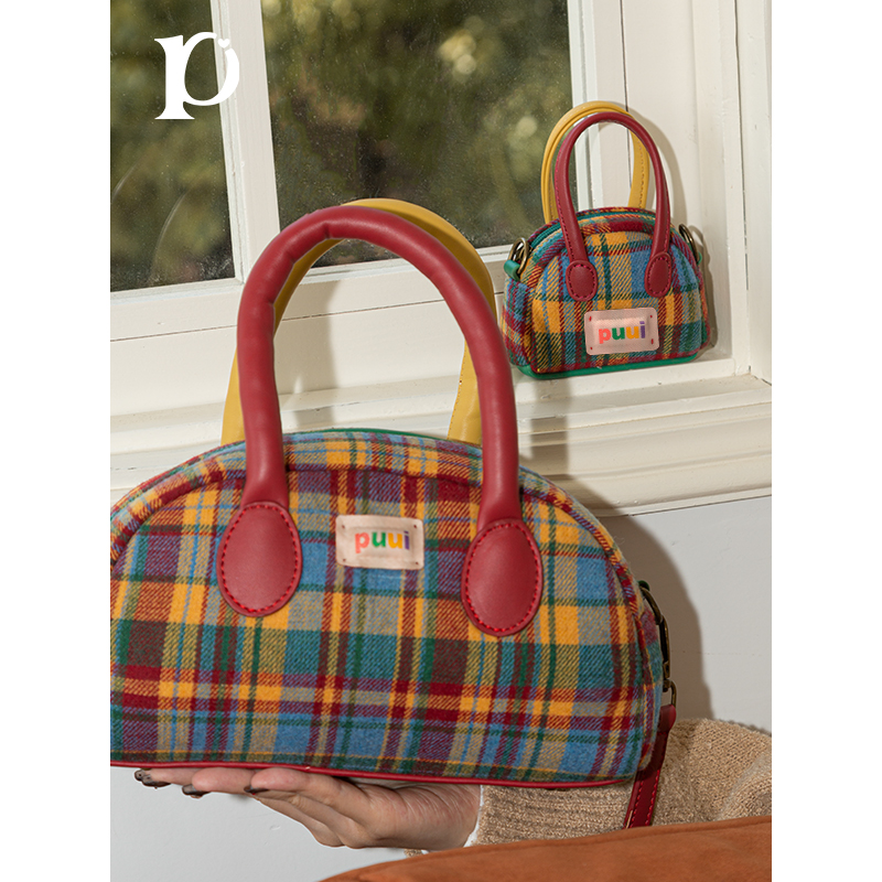 Puui原创耳机包零钱包可爱小包包格子百搭复古斜挎包小众格纹肩包
