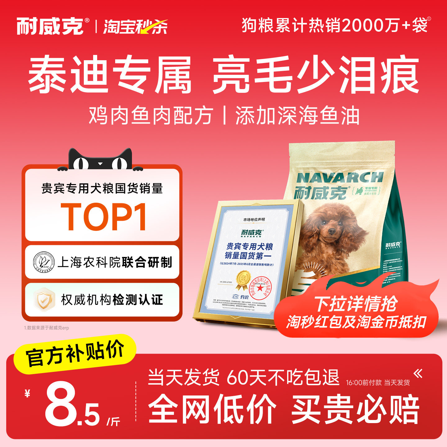 【泰迪专用】耐威克贵宾专用狗粮20斤装成幼犬粮小型犬官方旗舰店