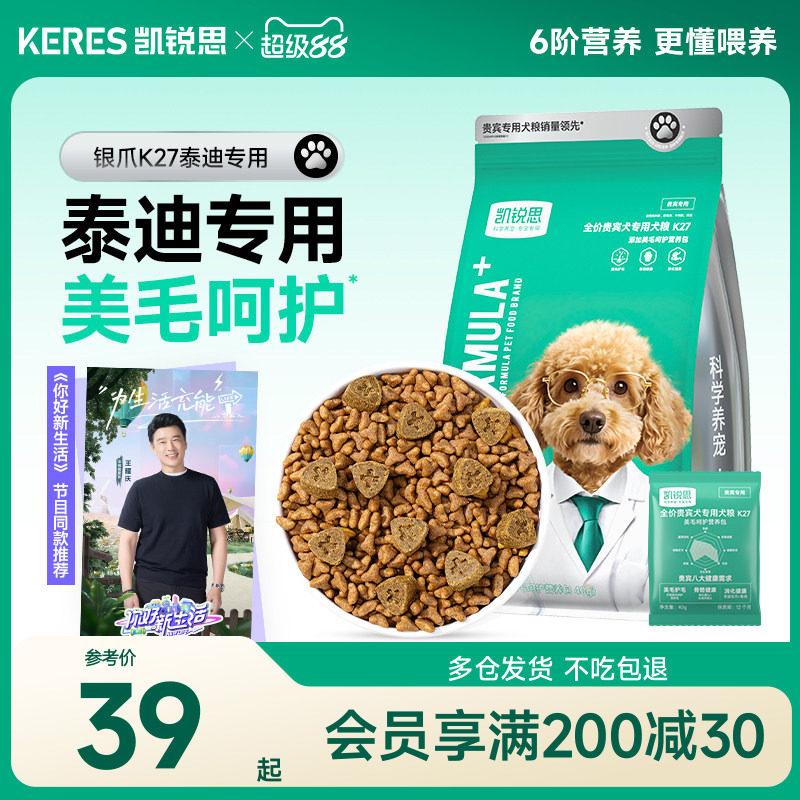 凯锐思银爪k27贵宾泰迪专用狗粮冻干双拼幼犬成犬小型犬奶糕犬粮