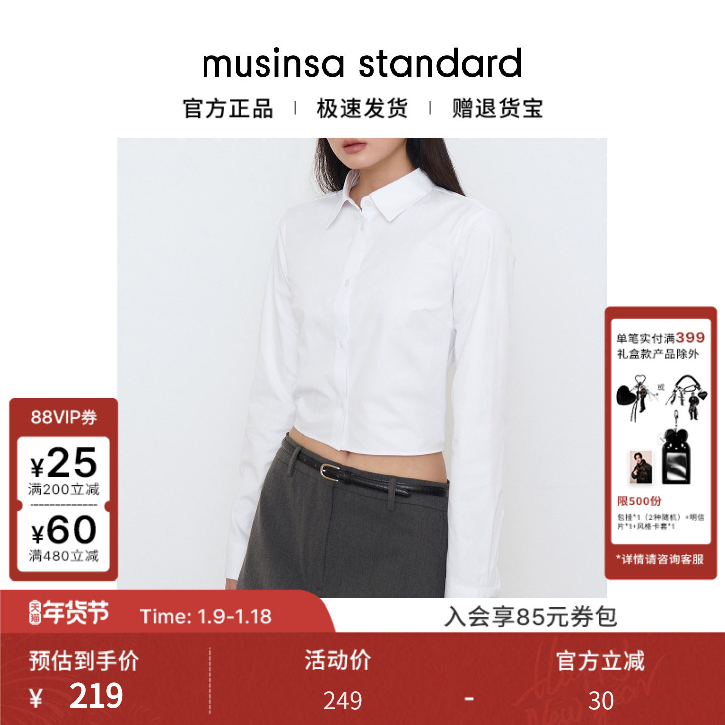 韩国25秋冬女士时尚百搭修身正肩短款长袖衬衫musinsa standard