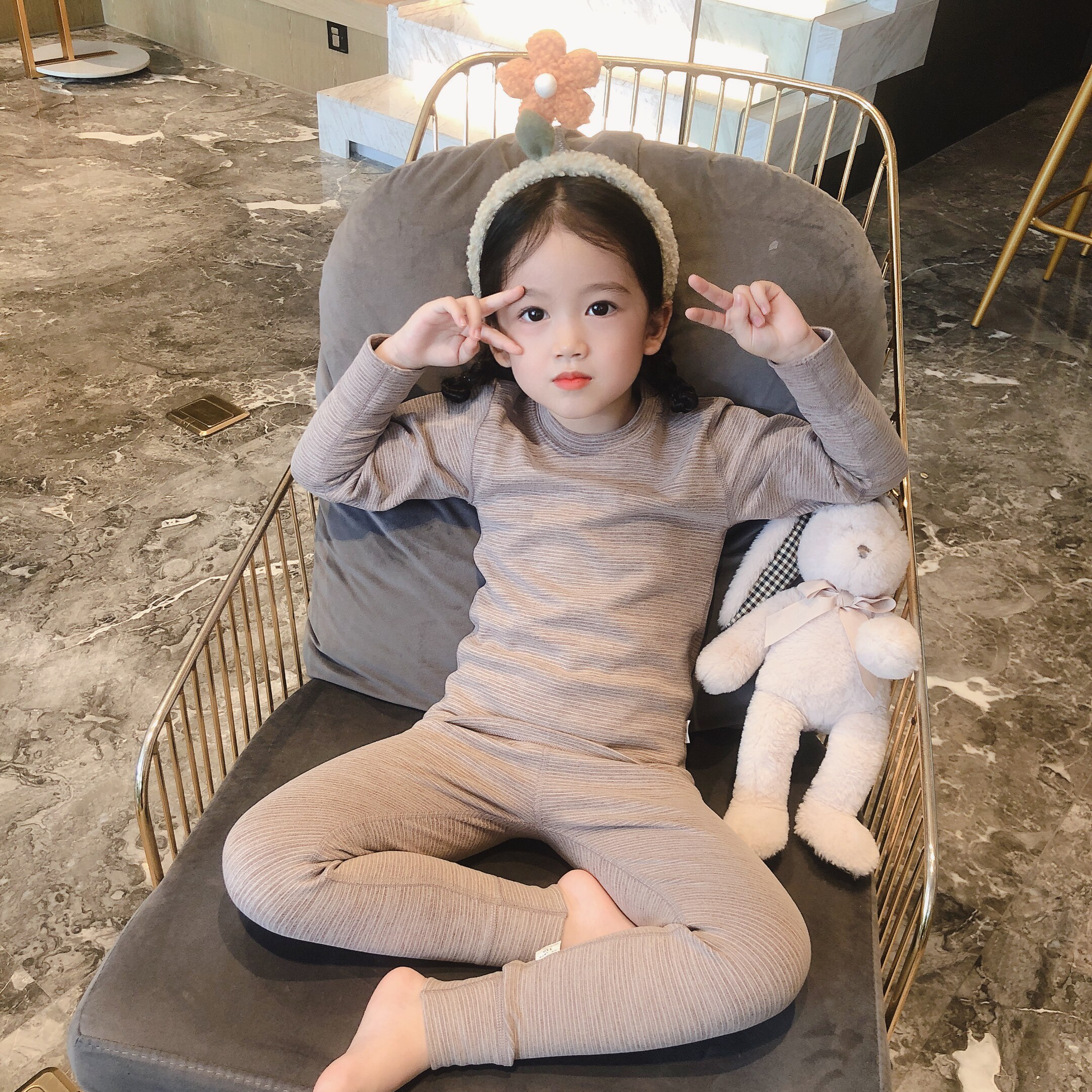 韩国儿童内衣套装薄款春秋男童衬衣衬裤女童秋衣秋裤宝宝线衣线裤