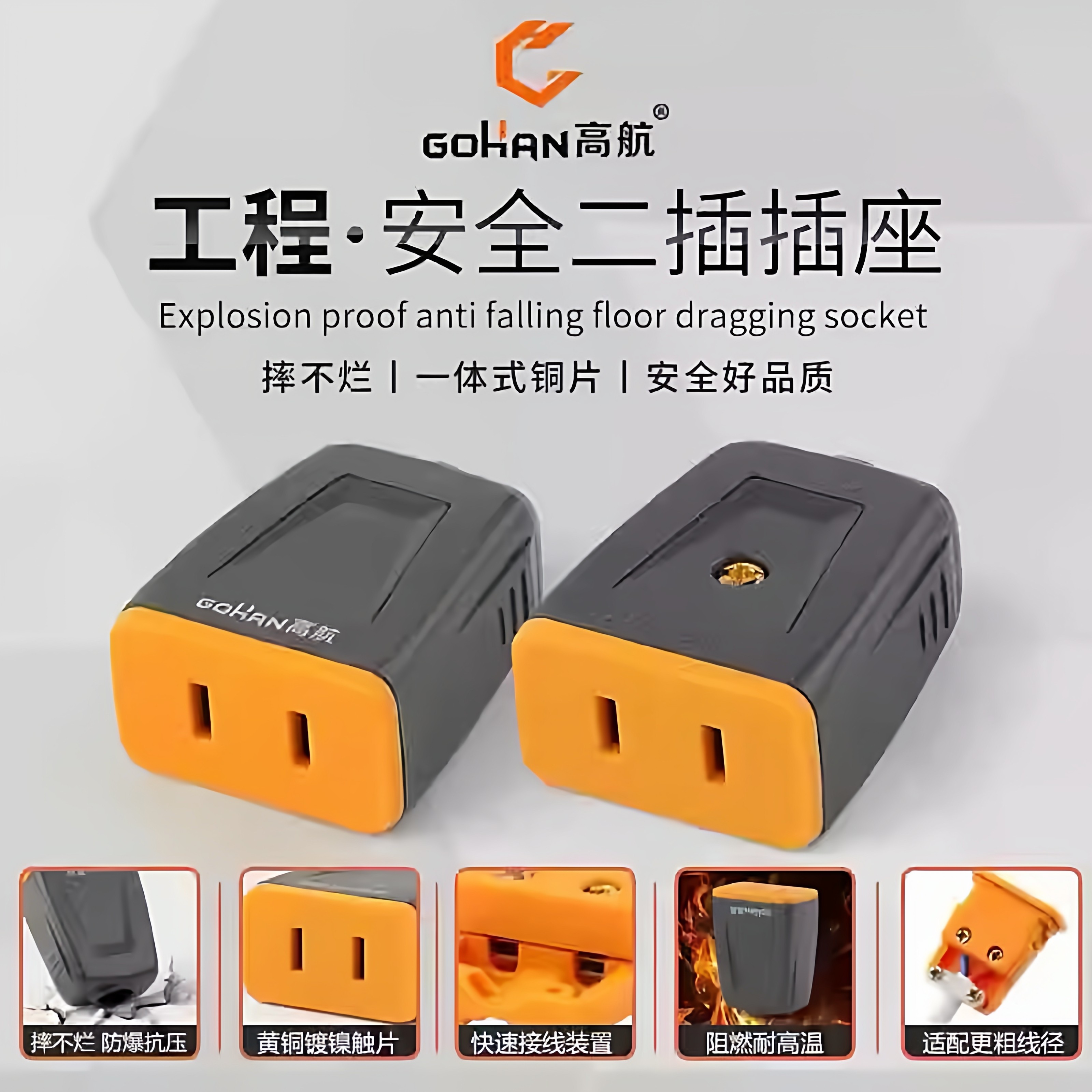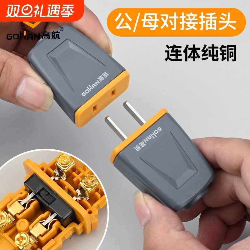 高航大功率二脚插头插座二孔母插公母接头安防监控电源延长线插座