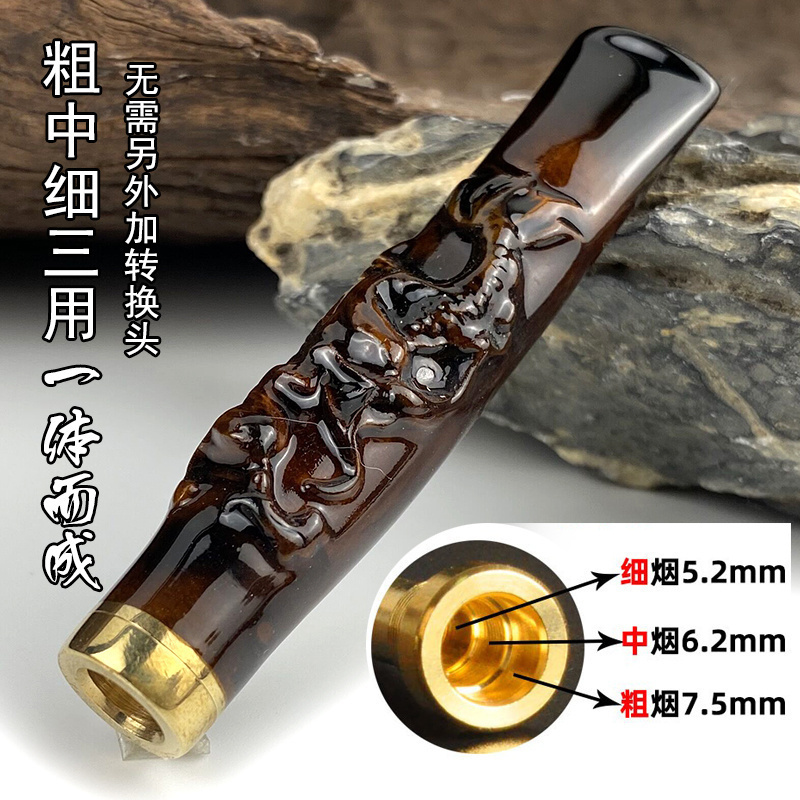 可拆水洗粗中细三用一体香烟过滤嘴纯黄铜烟嘴过滤器循环烟嘴套装