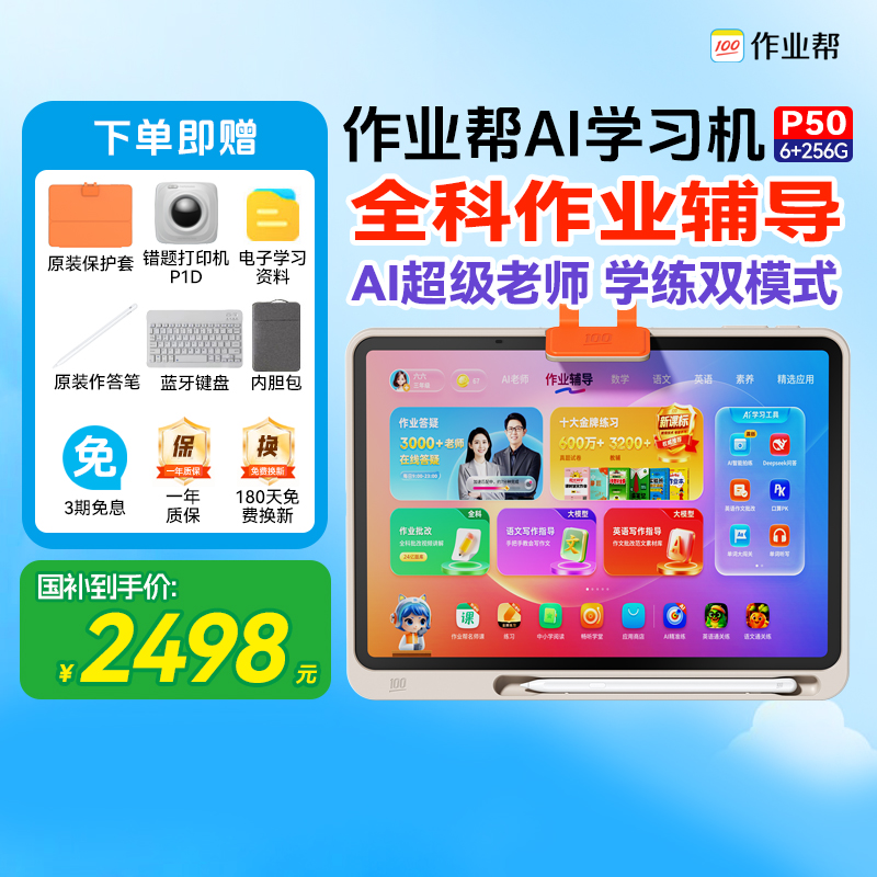 【重磅新品 政府补贴立减15% 】作业帮儿童英语学习机P50小学初中高中通用多功能全科学练机学习平板学生专用