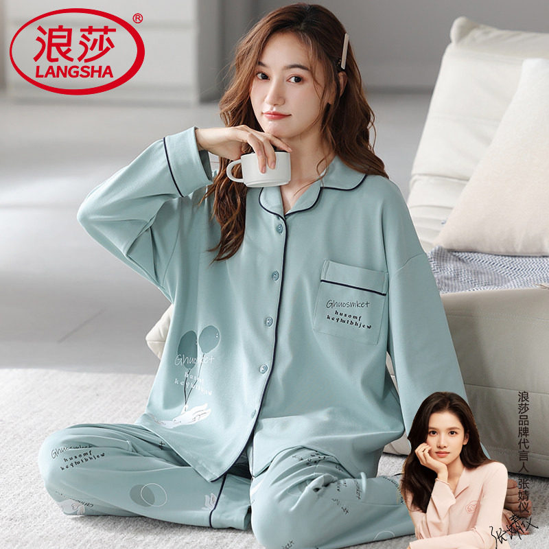 浪莎睡衣女士春秋款2026年新款纯棉长袖大码秋冬家居服可外穿套装