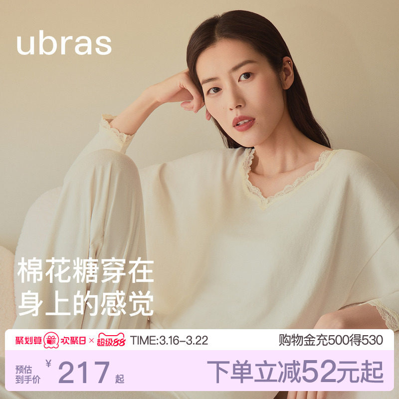 刘雯同款|ubras软绵绵家居服女士蕾丝睡衣羽绒化情侣套装男款秋冬