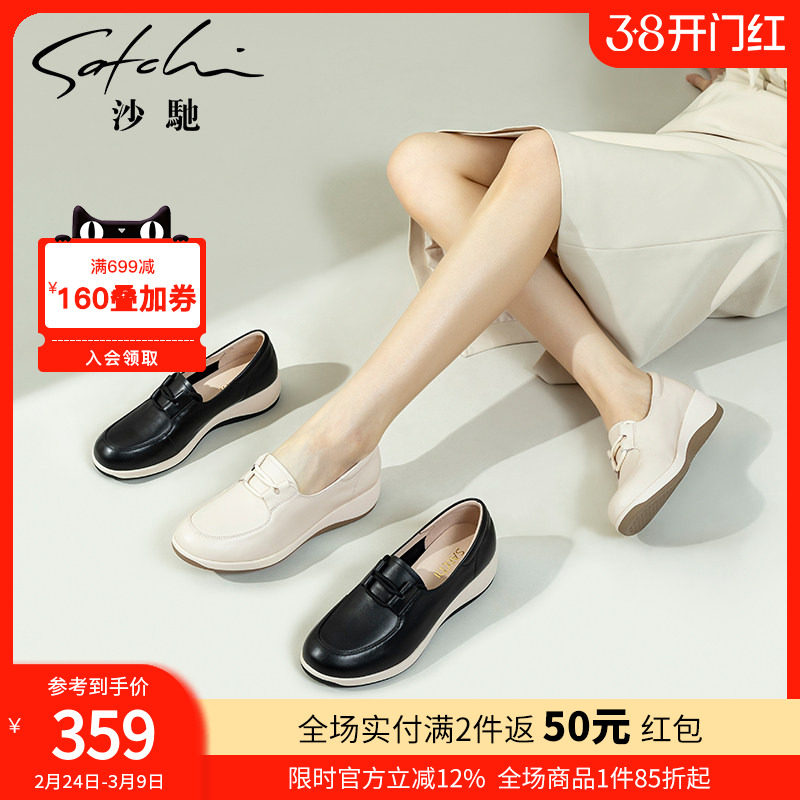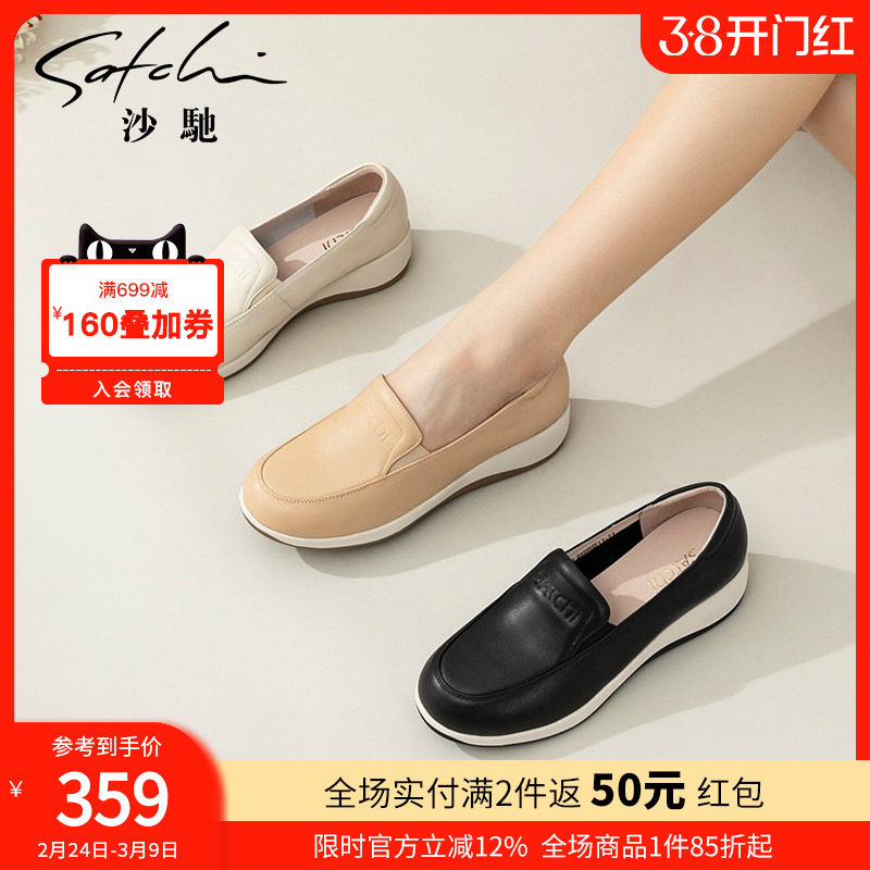 沙驰女鞋坡跟妈妈鞋软摇摇鞋2026年春夏新款轻便厚底休闲鞋乐福鞋
