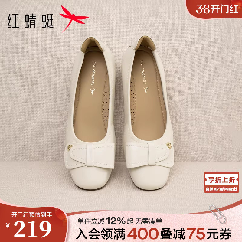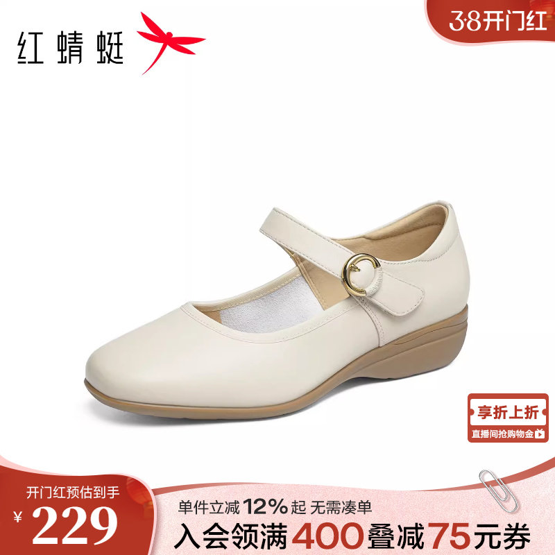 红蜻蜓坡跟单鞋女春季新款女鞋超软小羊皮妈妈鞋舒适真皮软底皮鞋