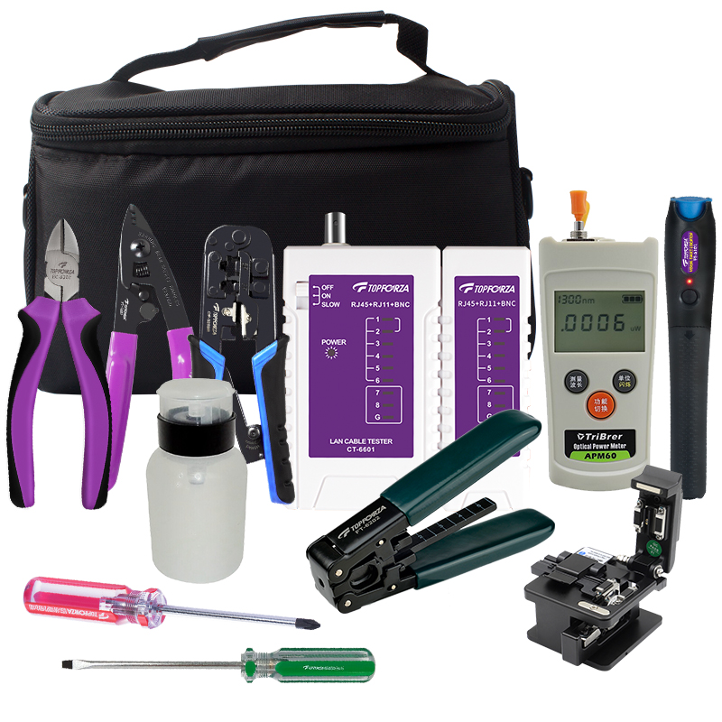 拓伏锐网络冷接工具包套装切割刀红光笔网线钳光功率计测试仪12件