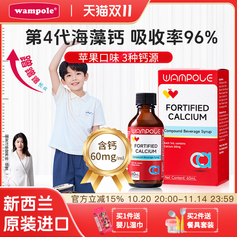 万哺乐螯合钙婴儿钙儿童液体钙强化海藻钙宝宝钙婴幼儿专用钙滴剂