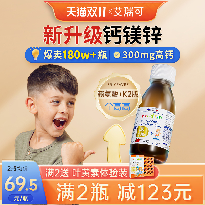 艾瑞可赖氨酸300mg钙镁锌儿童液体钙宝宝钙铁锌婴幼儿k2补钙