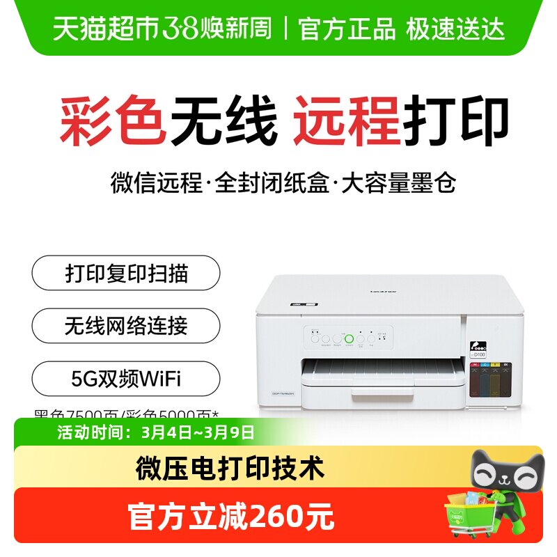 官方兄弟T436W打印机墨仓式彩色喷墨打印复印扫描一体家用无线