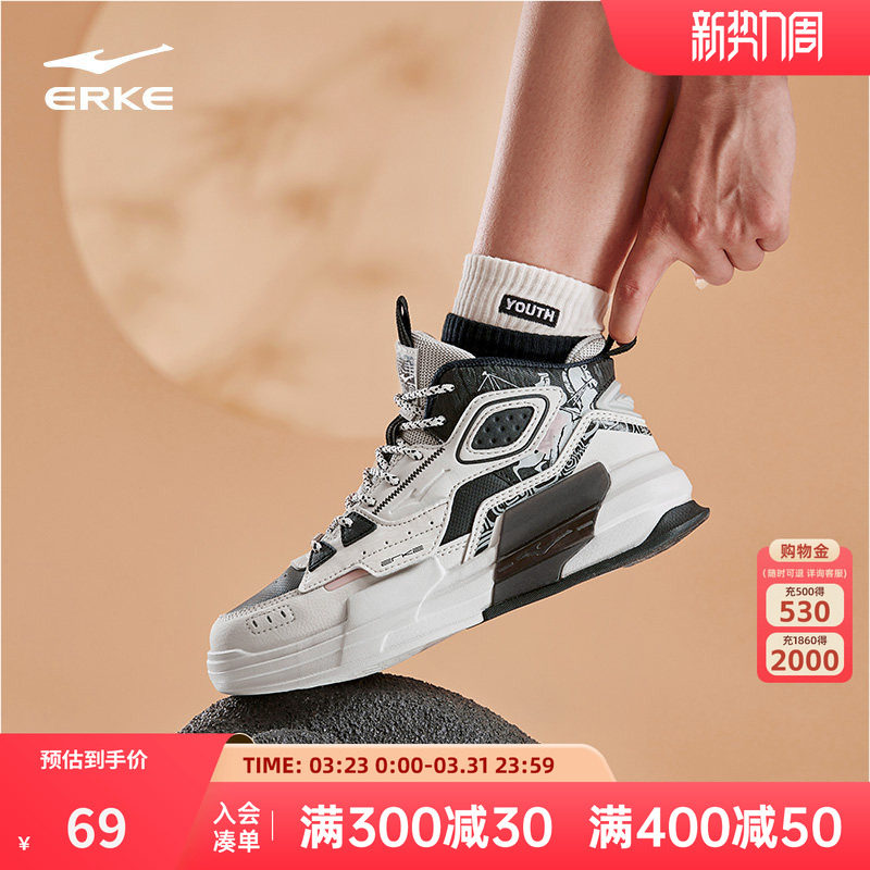 鸿星尔克女鞋板鞋春季新款女生高帮鞋子百搭休闲鞋轻便软底运动鞋
