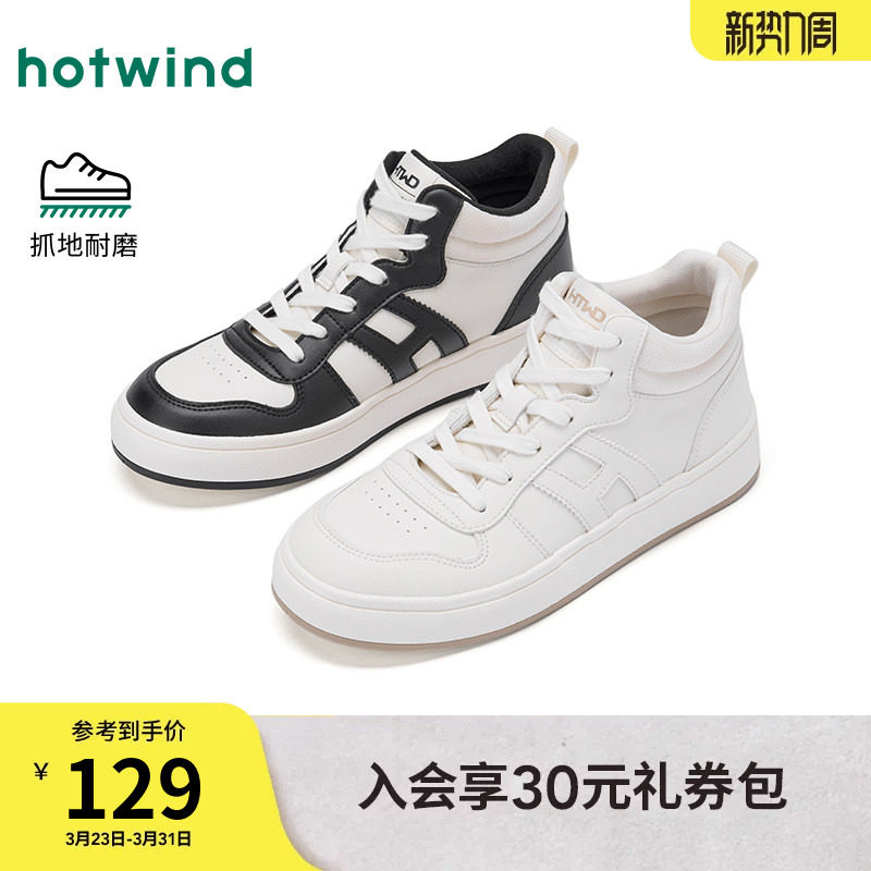 热风高帮小白鞋女鞋2026年春季新款运动休闲鞋百搭板鞋简约面包鞋