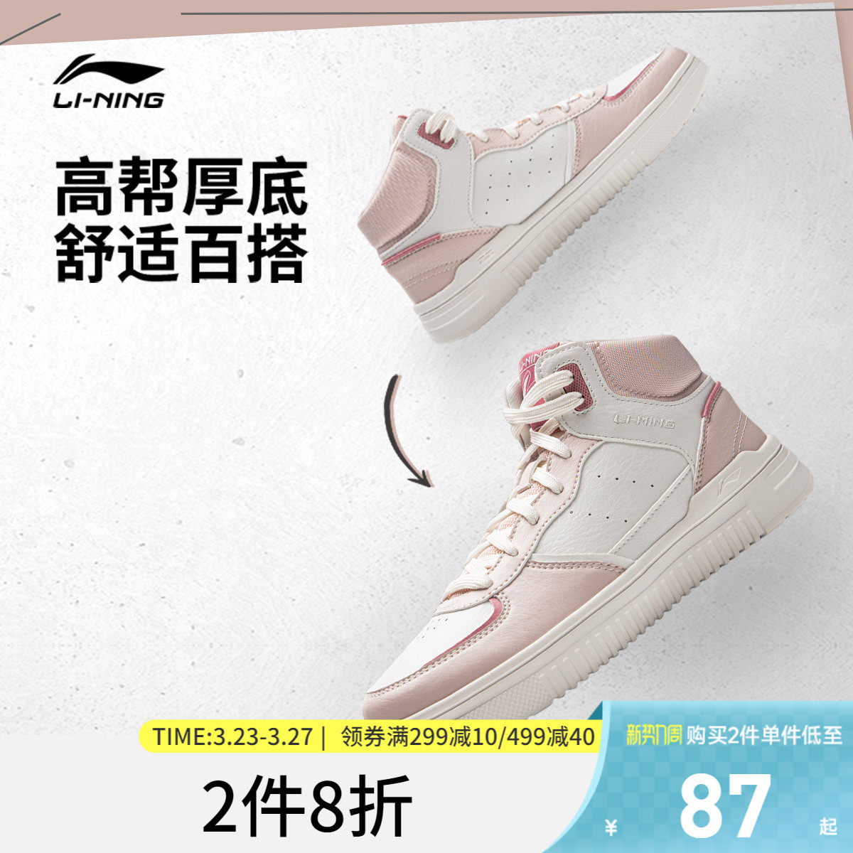 李宁青云Hi丨休闲鞋女鞋春季厚底增高板鞋高帮复古百搭运动鞋女款