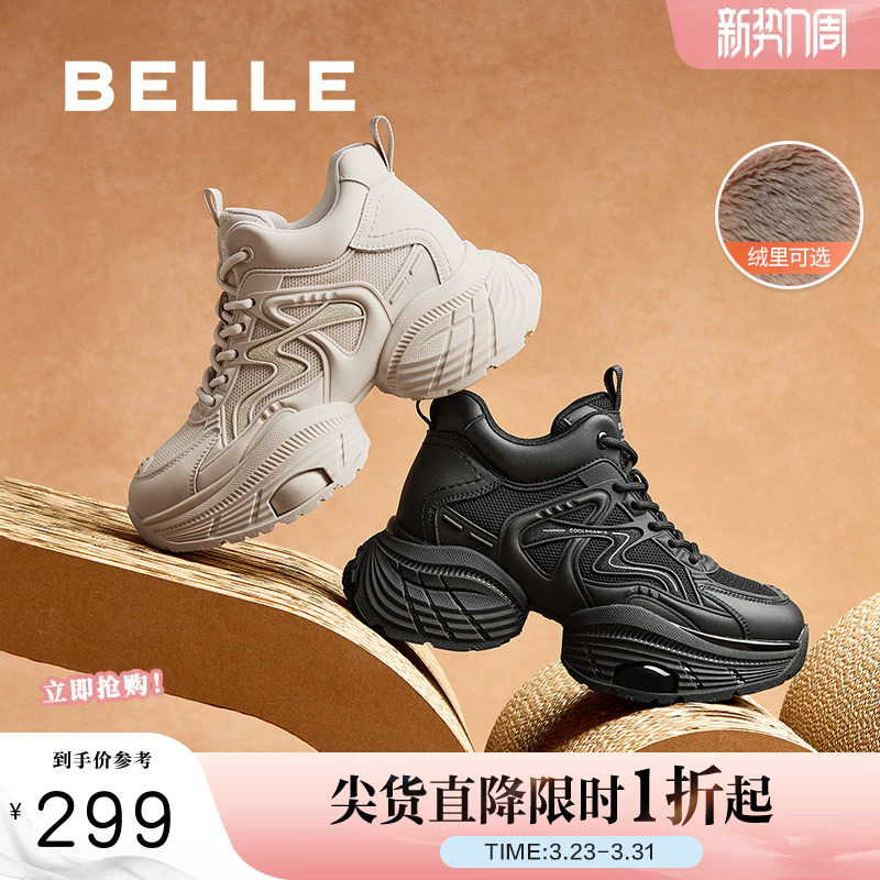 百丽女鞋厚底高帮老爹鞋新款复古加绒运动休闲鞋板鞋棉鞋B9K1DDM4