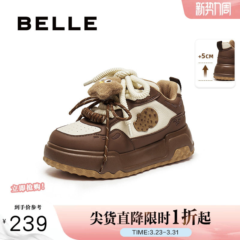 百丽女鞋子厚底休闲板鞋女秋冬新款高帮增高鞋面包板鞋E7D1DCM5