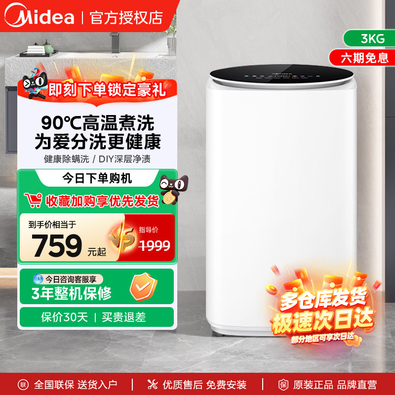 美的3kg婴儿童宝宝迷你小型高温煮洗杀菌除螨全自动波轮洗衣机