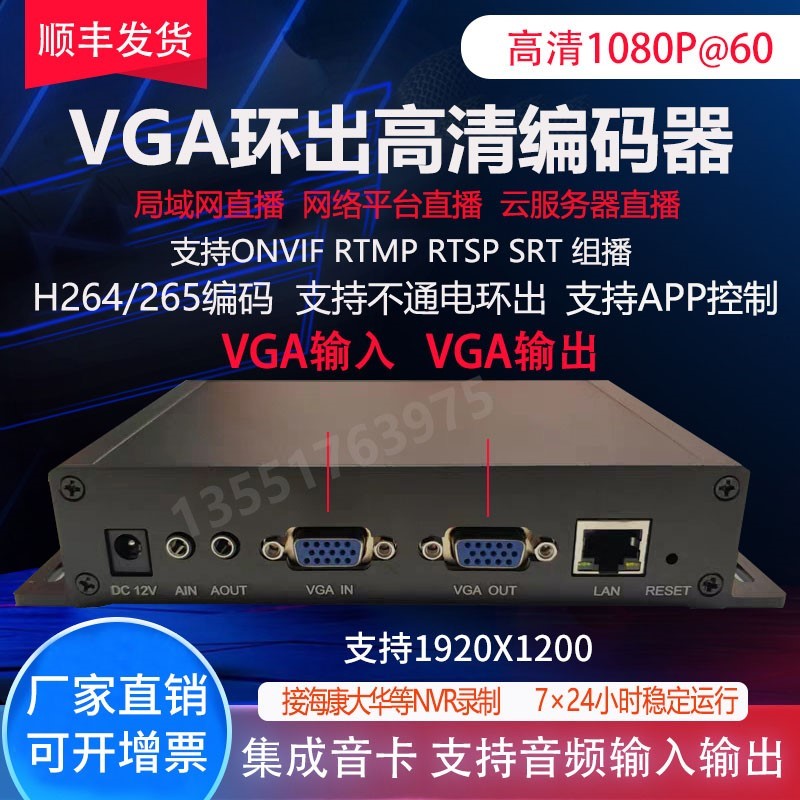 全新H.265vga转网络vga环出编码器电脑录屏采集卡游戏直播卡onvif