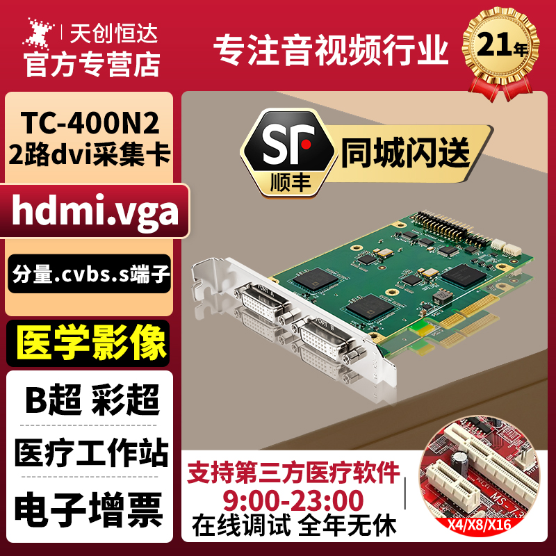 天创恒达 TC-400N2 HDV高清视频双路DVI/VGA采集卡医疗影像SDK