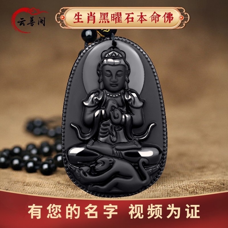 天然黑曜石本命佛吊坠生肖兔牛虚空藏大势至文殊马本命年礼物男女