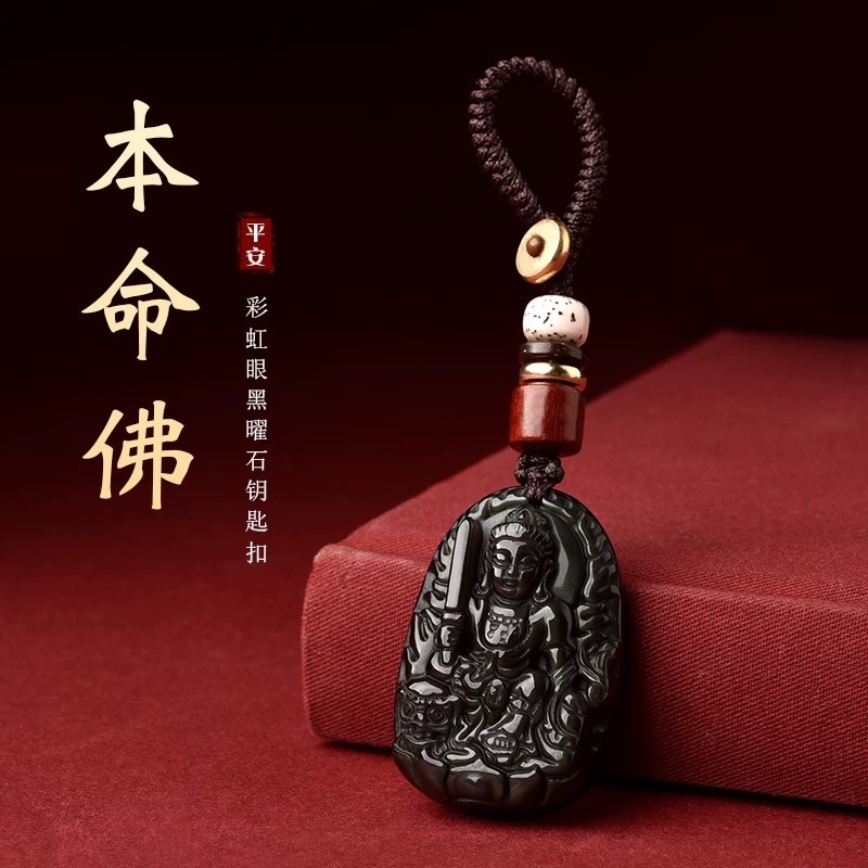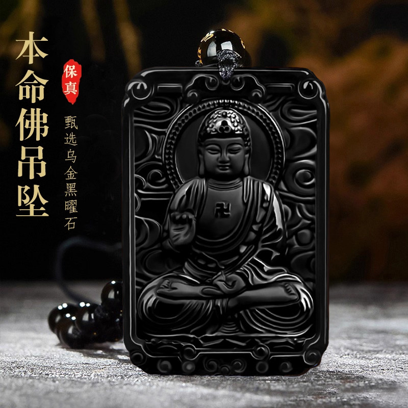 天然黑曜石吊坠官方旗舰店正品本命佛项链护身符生肖挂件男女礼物