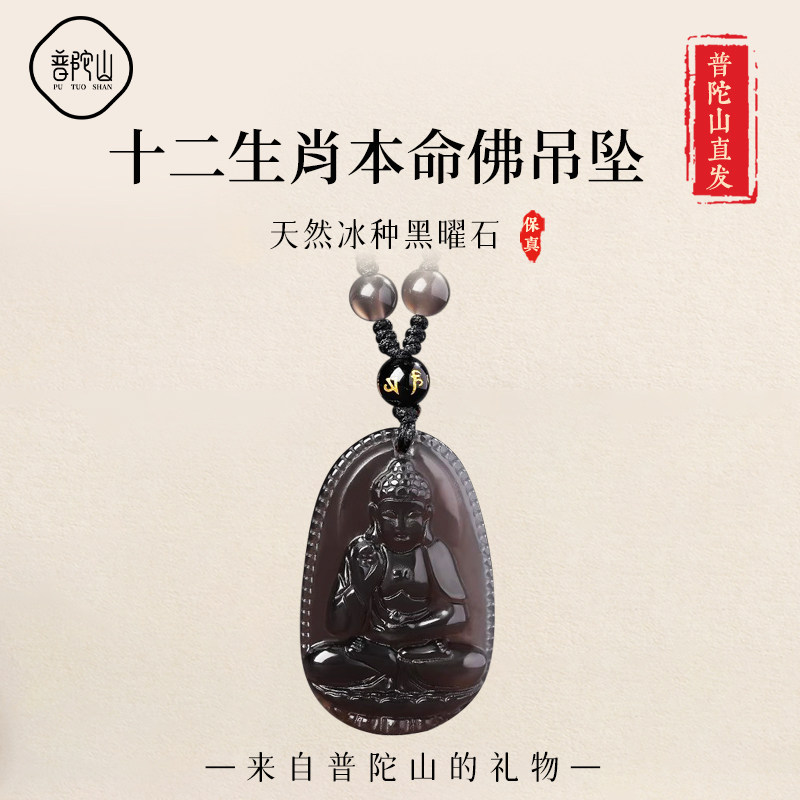 普陀山天然黑曜石本命佛吊坠男十二生肖本命年护身符项链官方正品