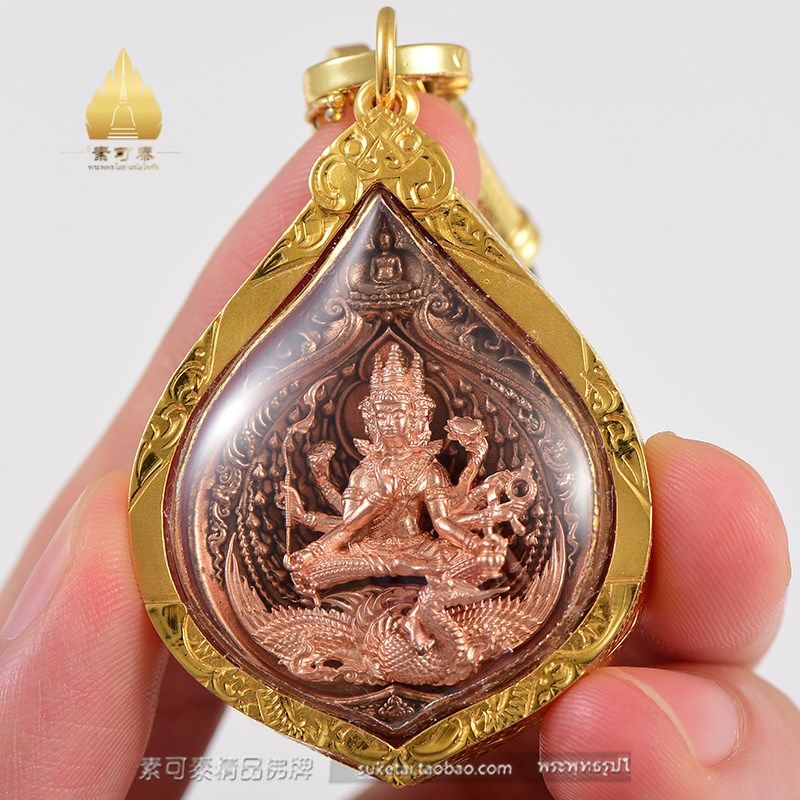 素可泰泰国佛牌正牌 骑凤四面佛 男女吊坠 水滴形 曼谷 善金财