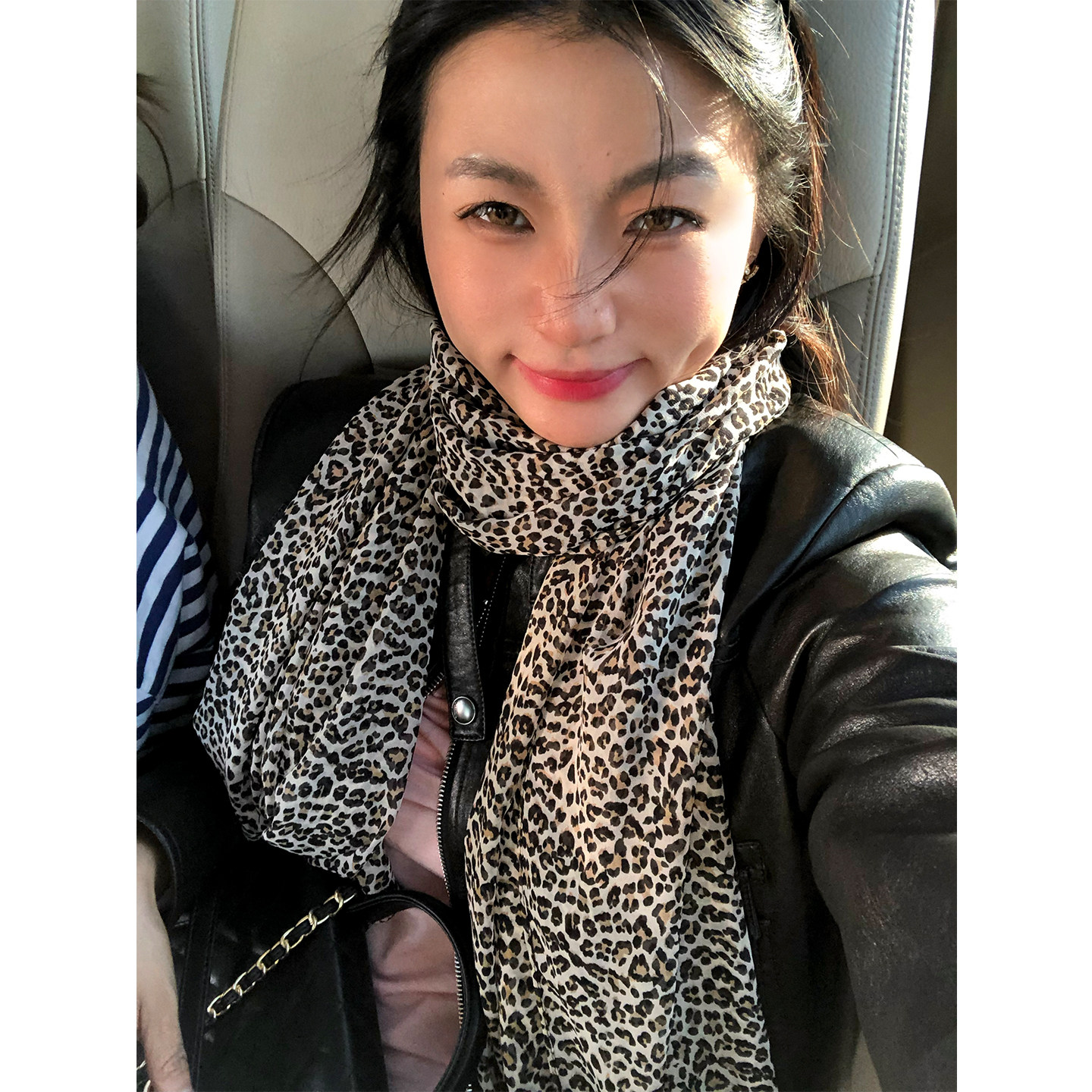 落落狷介 围巾女款2025新款冬仿真丝豹纹围脖护颈长方形小个子女
