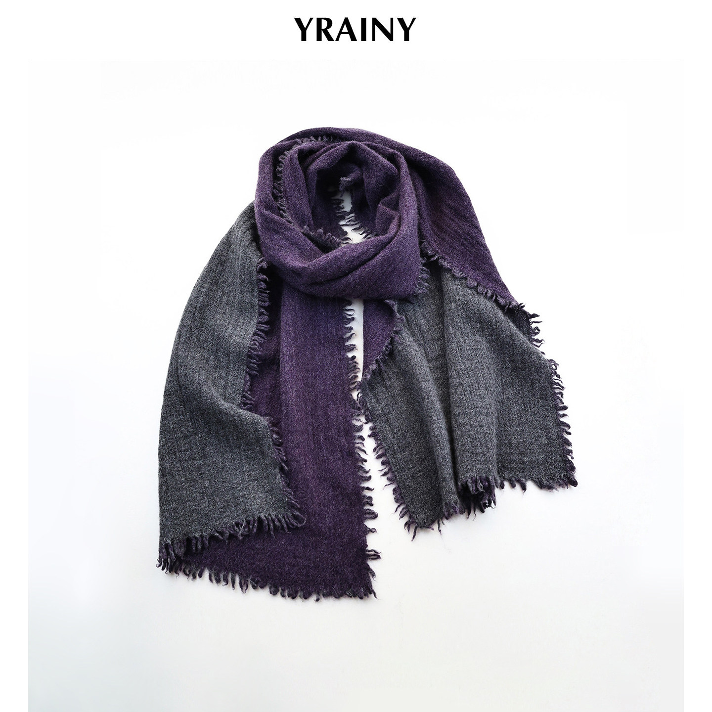 原创设计韩版超赞高级紫绿配色羊毛围巾冬季保暖长方形披肩女百搭