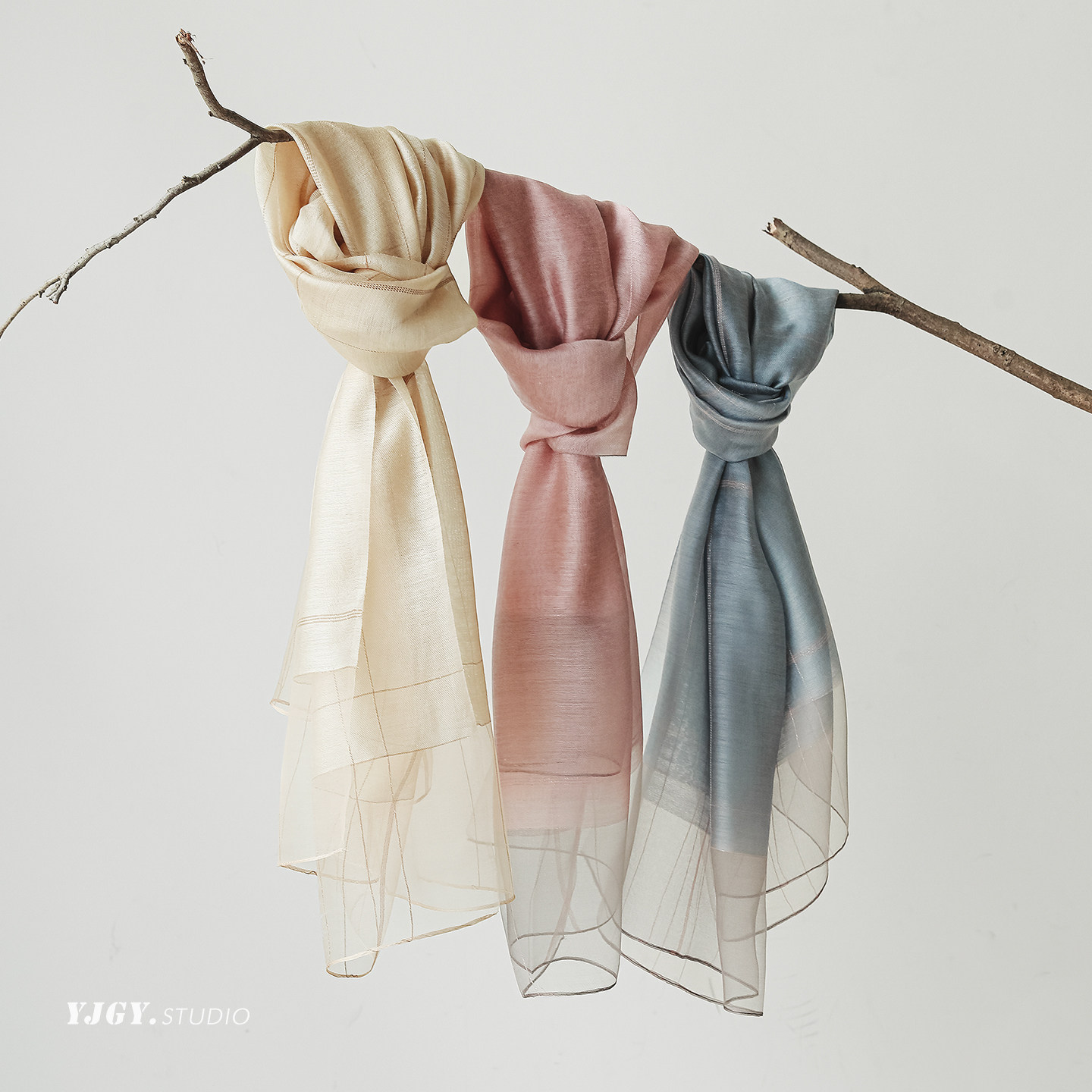 印计谷羽韩版渐变色围巾女春夏季轻薄长方形丝巾多功能空调房披肩