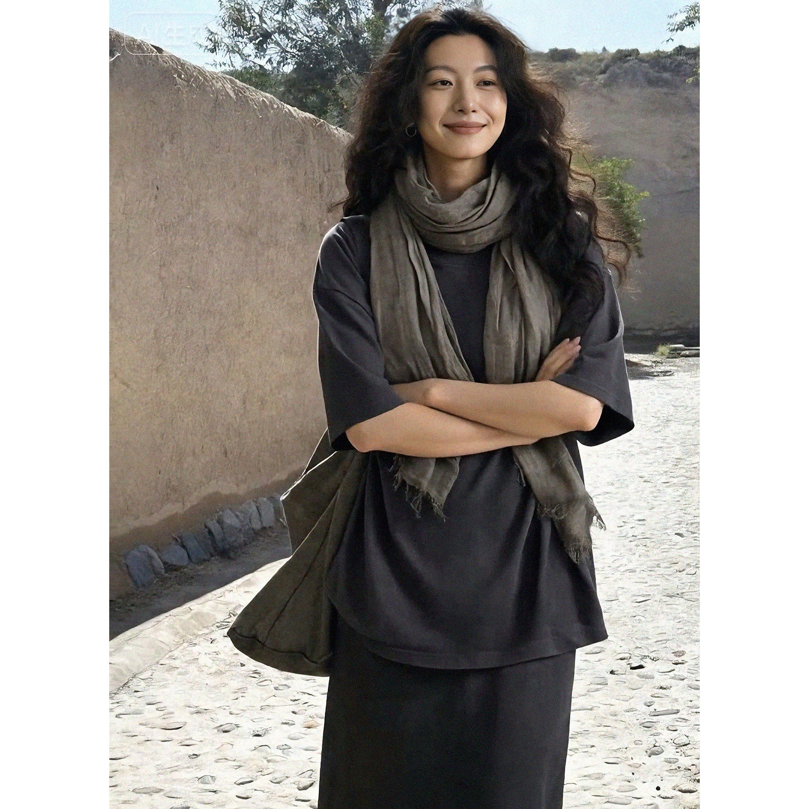 韩版棕色棉麻围巾女春夏季复古文艺风褶皱长方形披肩薄款透气丝巾