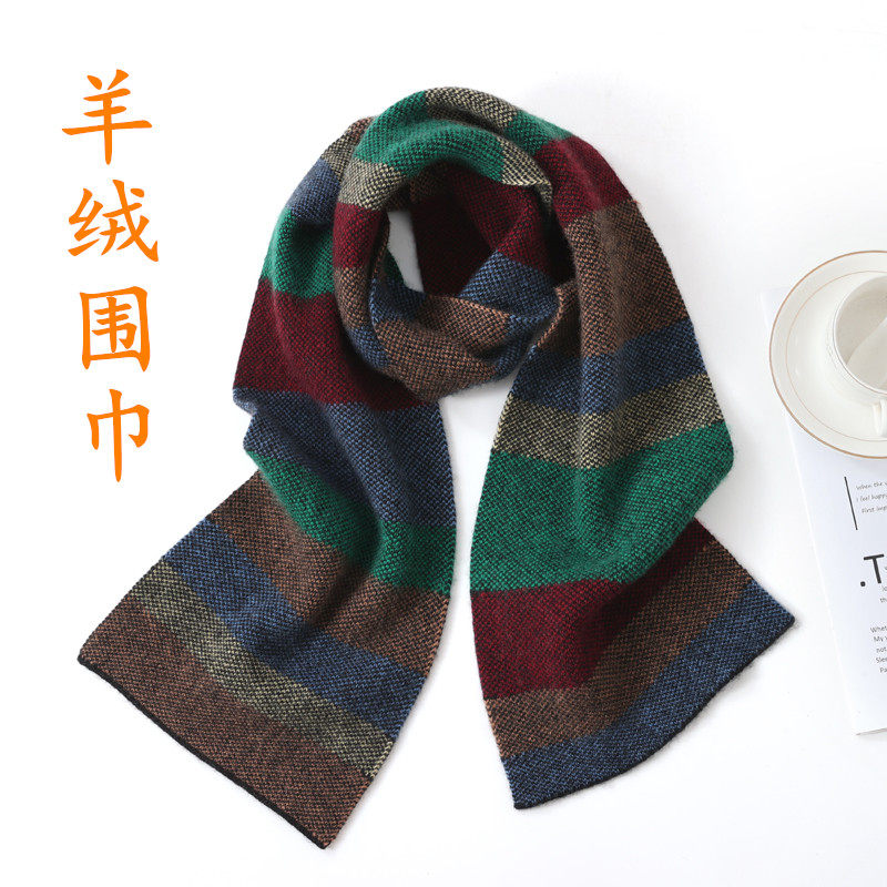 韩版撞色条纹羊绒围巾男女通用冬季保暖百搭长方形针织拼色围脖套