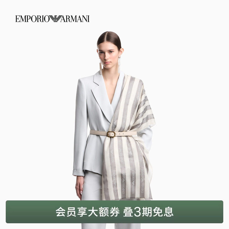 EMPORIO ARMANI/阿玛尼26年春夏新款女士长方形条纹短穗围巾官方