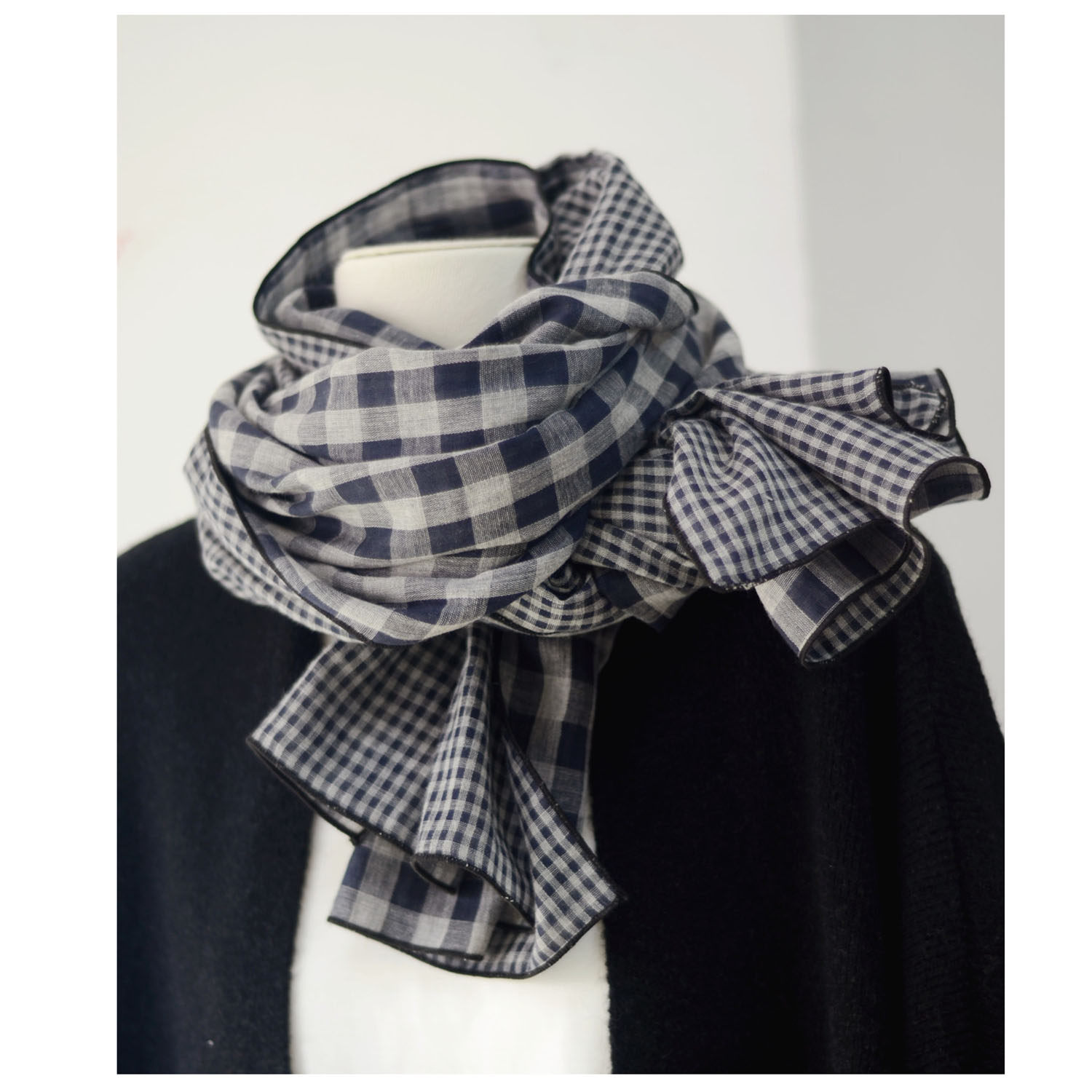 特●J20260 文艺棉质碎花拼纯色长方形薄款围巾女2026春 米兰宣言