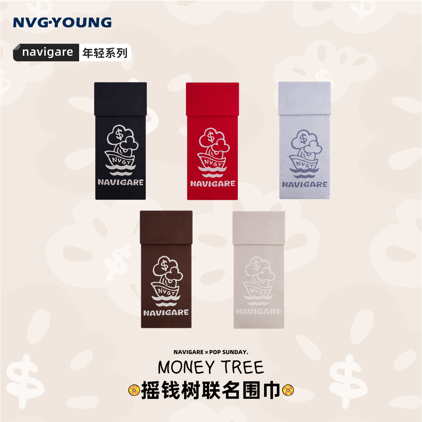 Navigare意大利小帆船摇钱树联名红色围巾春秋男女通用保暖长方形