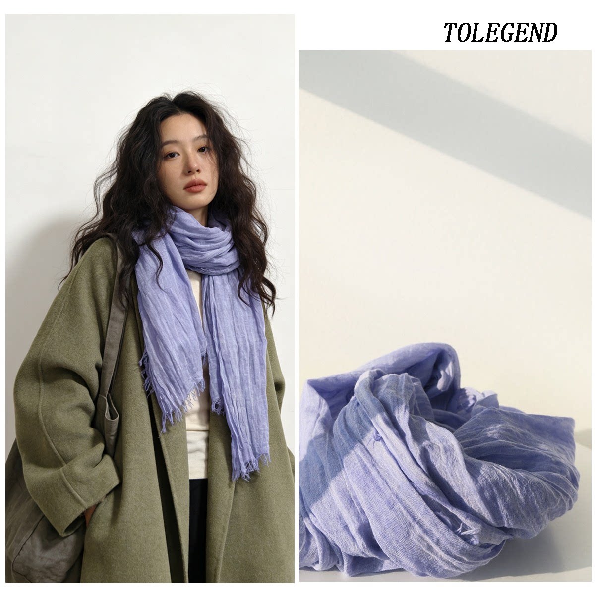 韩版百搭纯色棉布围巾男女通用春夏保暖长方形披肩高级做旧肌理紫