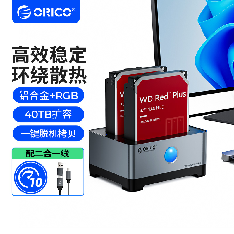 Orico奥睿科2.5/3.5寸双盘位外置读取移动硬盘盒脱机拷贝硬盘底座