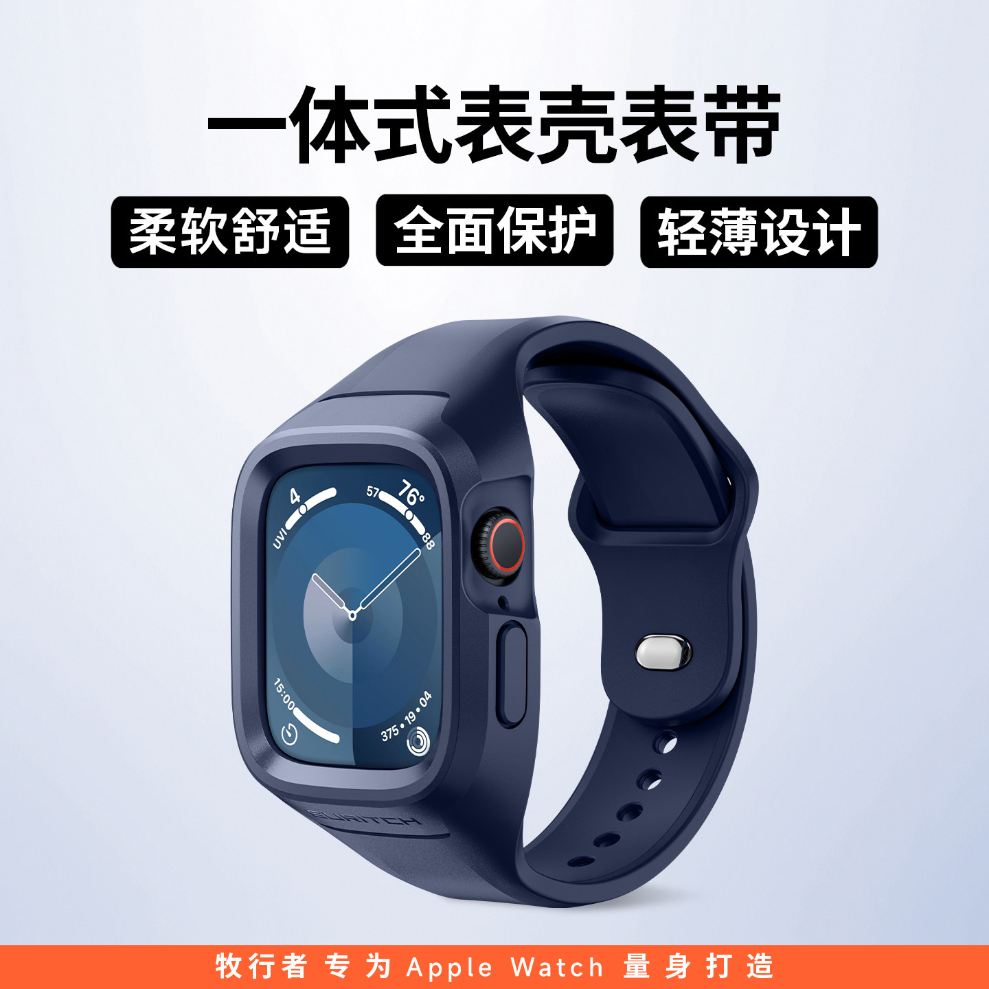 适用apple watch9表带S8/7苹果手表防摔运动6/5/4代潮SE2个性iwatch一体式表带硅胶男女保护壳40/41/44/45mm
