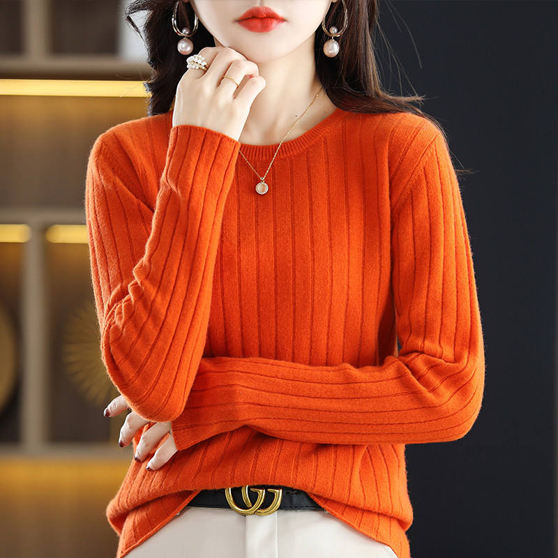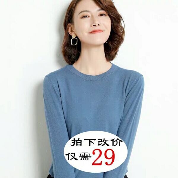 新款圆领长袖针织打底衫女套头毛衣短款纯色简约百搭内搭薄羊毛衫