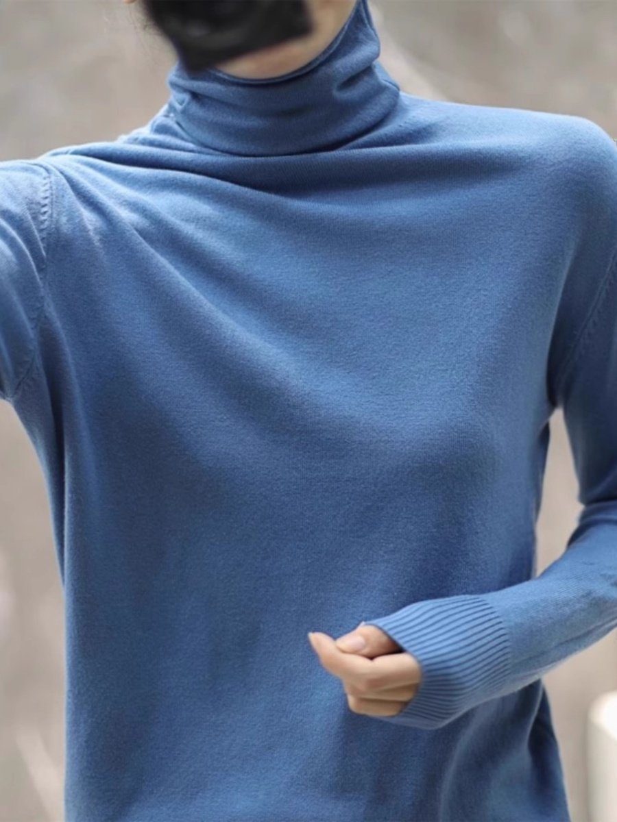 2025爆款秋季羊绒衫女堆堆领短款套头毛衣高领修身薄款打底针织衫
